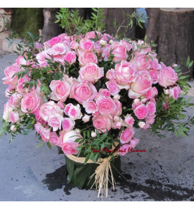 Bouquet rond de roses couleurs au choix, et feuillages de saison. entre 40 et 50 roses suivant les prix de l'arrivage